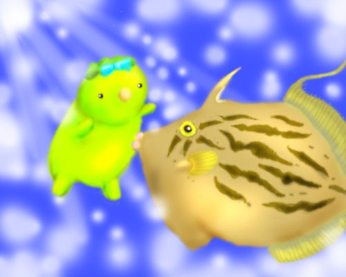 キウイちゃんとカワハギちゃん。