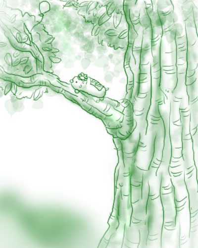 めちびちゃんが風船を取ろうと木に登っているところ。