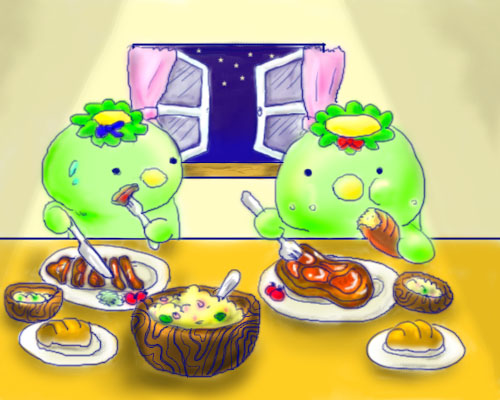 食事中の初代とでこちゃん。